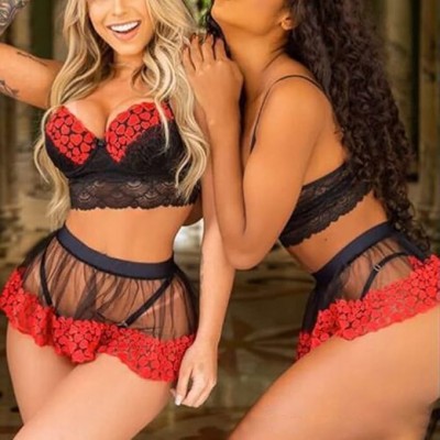 página de título > Rosvajfy Sexy Women's Sexy 3 piezas de lencería Set de encaje y mini falda de malla de malla con pan