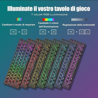 【Teclado ilustrado RGB】 Una variedad de colores y modos de iluminación para elegir, modo de respiración modificado o permanente. Puede ser excelente para jugar por la noche incluso sin luz. También es posible ajustar el brillo y la velocidad de la respiración de la luz de fondo de acuerdo con sus preferencias.