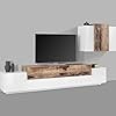 STRUTTURA E UTILIZZO - Mobile per salotto composto da una base porta TV di colore bianco con tre ante con apertura a ribalta e un pensile a muro: il mobile pensile è dotato di tre antine battenti con tre ripiani - Entrambi i moduli presentano un'anta con dettaglio di colore acero - A seconda delle vostre necessità potrete posizionare il modulo pensile all'altezza e nella posizione che preferite - Oltre alla TV potrete personalizzare la parete con i vostri soprammobili preferiti che rimarranno in esposizione - Lo spazio all'interno delle ante è perfetto per riporre in modo ordinato i vostri libri, oggetti o stoviglie in modo ordinato e discreto