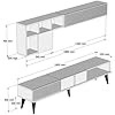 STRUTTURA E UTILIZZO - La scelta dei vari mobili che formano questa composizione da salotto rende il design di questo articolo d'arredamento moderno, funzionale e salvaspazio - Oltre al posizionamento della TV potrete personalizzare la parete con i vostri soprammobili preferiti che rimarranno in esposizione sugli scaffali - Lo spazio all'interno delle ante è perfetto per riporre in modo ordinato i vostri libri, documenti, oggetti decorativi o stoviglie in modo ordinato e discreto - Set soggiorno perfetto per arredare un salotto, sala da pranzo oppure una stanza open space - Set con un'elegante fusione di design e funzionalità, perfetto per arredare il vostro soggiorno con stile e praticità