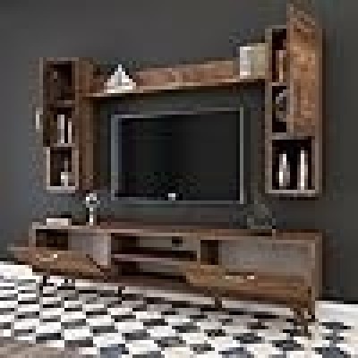 STRUTTURA E UTILIZZO Oltre al posizionamento della TV potrete personalizzare la parete con i vostri soprammobili preferiti che rimarranno in esposizione sugli scaffali - Lo spazio all'interno delle ante è multifunzione, perfetto per riporre in modo ordinato i vostri libri, documenti, oggetti decorativi o stoviglie in modo ordinato e discreto - Set soggiorno multiuso, ideale per arredare un salotto, sala da pranzo oppure una stanza open space - Set con un'elegante fusione di design e funzionalità, perfetto per arredare il vostro soggiorno con stile e praticità