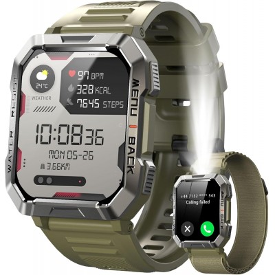 Mil Militar Smartwatch Iewododo Bluetooth llamadas, 100 días de batería/antorcha/brújula/cardiofrequ