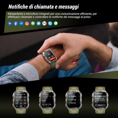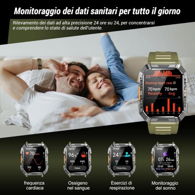 【Qualità Standard Militare & Batteria da 100 Giorni】La montatura dello smartwatch militare è realizzata in una speciale lega di alluminio e ha superato 12 test militari. È robusta, impermeabile e antipolvere, perfetta per ambienti estremi. Con una batteria da 900 mAh, 5 volte più potente degli smartwatch tradizionali, garantisce 100 giorni di standby e 30 giorni di uso quotidiano. Dì addio alla ricarica frequente!