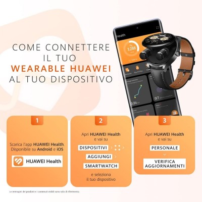Compatibile con iOS e Android】Questo dispositivo è compatibile con HarmonyOS 2 o versioni successive, Android 6.0 o versioni successive e iOS 9.0 o versioni successive. Scarica l'app HUAWEI Health per monitorare la tua salute e attività fisica
