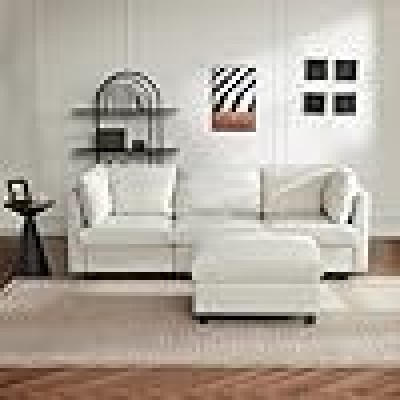 Kecduey 3 asientos en forma de L, diseño moderno, muebles acolchados, esquina con reposapiés y F