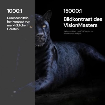 Padronanza del Colore con Contrasto 15.000:1 - Sperimenta un rapporto di contrasto ultra-elevato 15.000:1 e la tecnologia Enhanced Black Level (EBL), che offre veri neri profondi nelle scene più buie. Con un'ampia gamma cromatica Rec.2020 del 110% e una luminosità di 3000 Lumen ISO, VisionMaster Pro offre colori vividi e realistici, privi di effetti arcobaleno. La calibrazione certificata ISF garantisce un'accuratezza e una coerenza cromatica leader del settore per una perfezione cinematografica su misura per le tue preferenze.