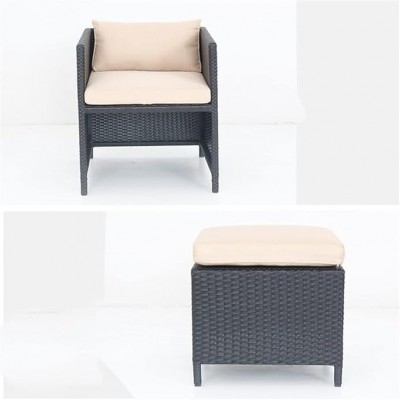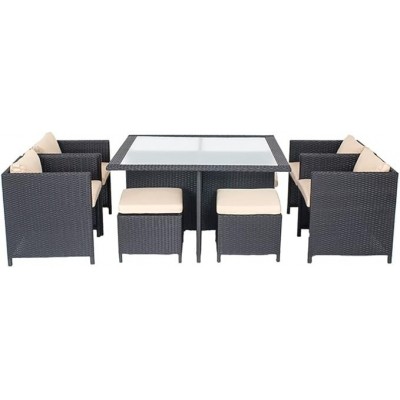 Mesa de comedor de Kccuzo y sillas al aire libre en ratán sintético, combinación de nueve piezas, mu